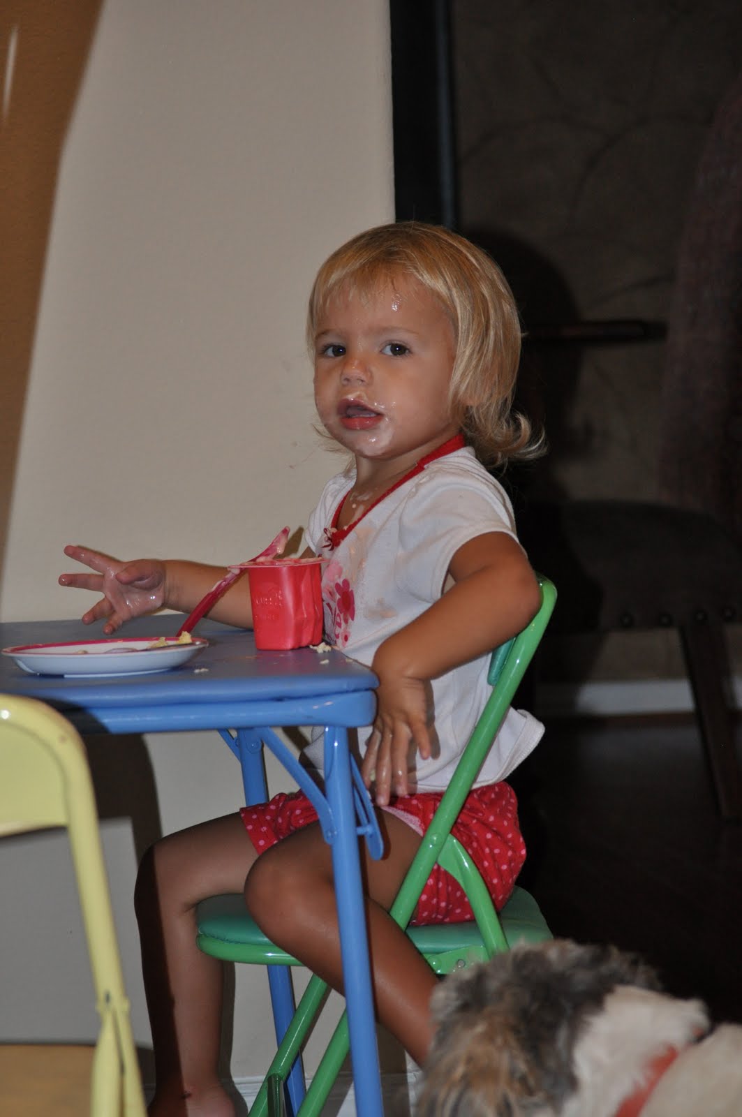 I thought it would be fun to make brownies together thinking she could help pour and stir. Brownie mix wound up on the floor and she kept trying to eat it which I didn't want her to do because of the raw eggs. In the end, she had chocolate on her, me, in her mouth, and on the floor. What fun we had!